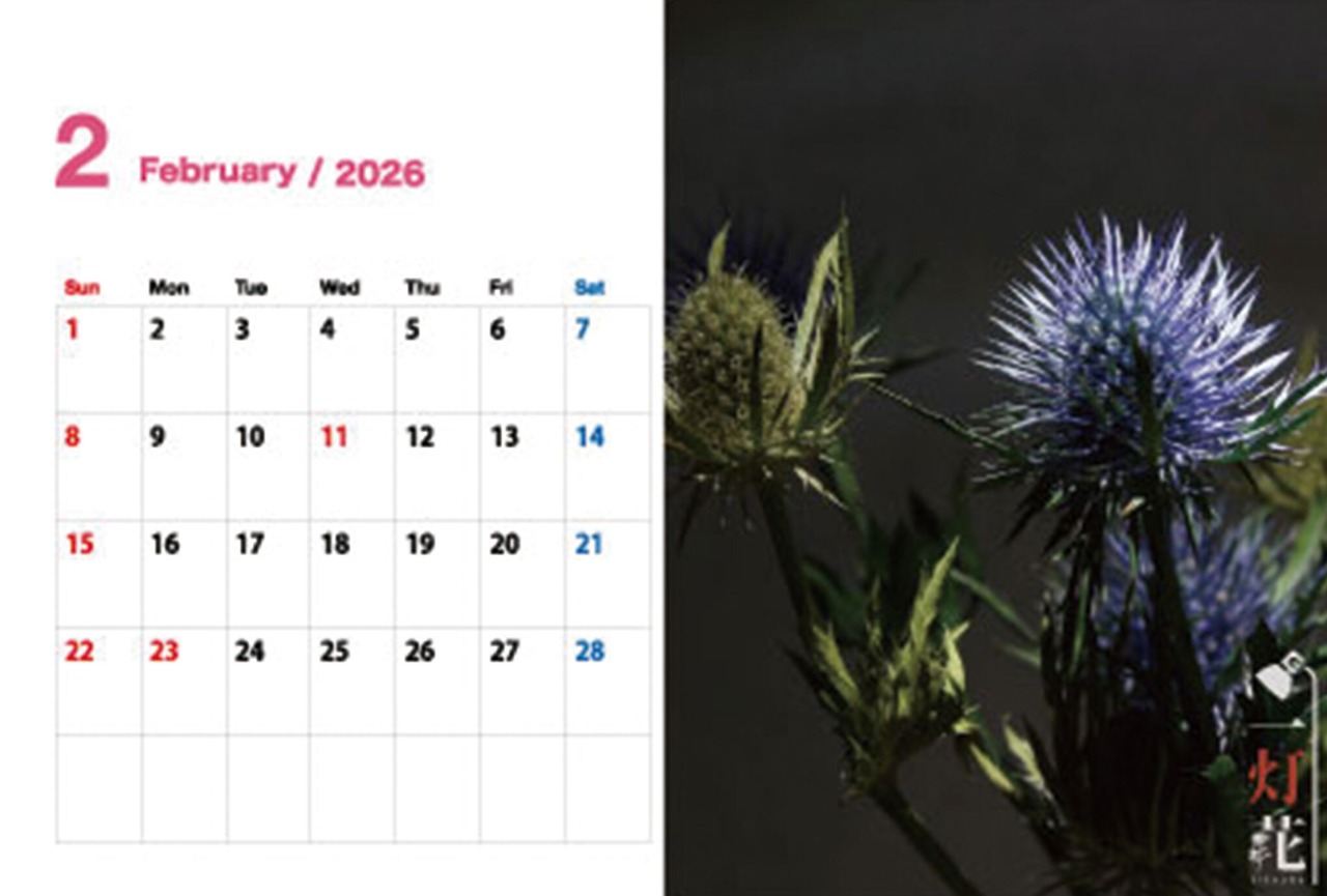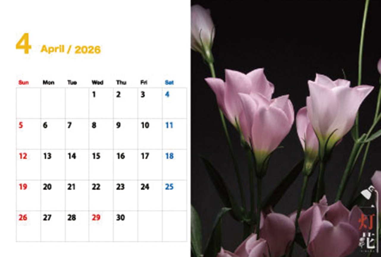 2026卓上カレンダー(ポストカードサイズ、クリアケース付き)「一灯花-ひとつの灯りで撮る花-」