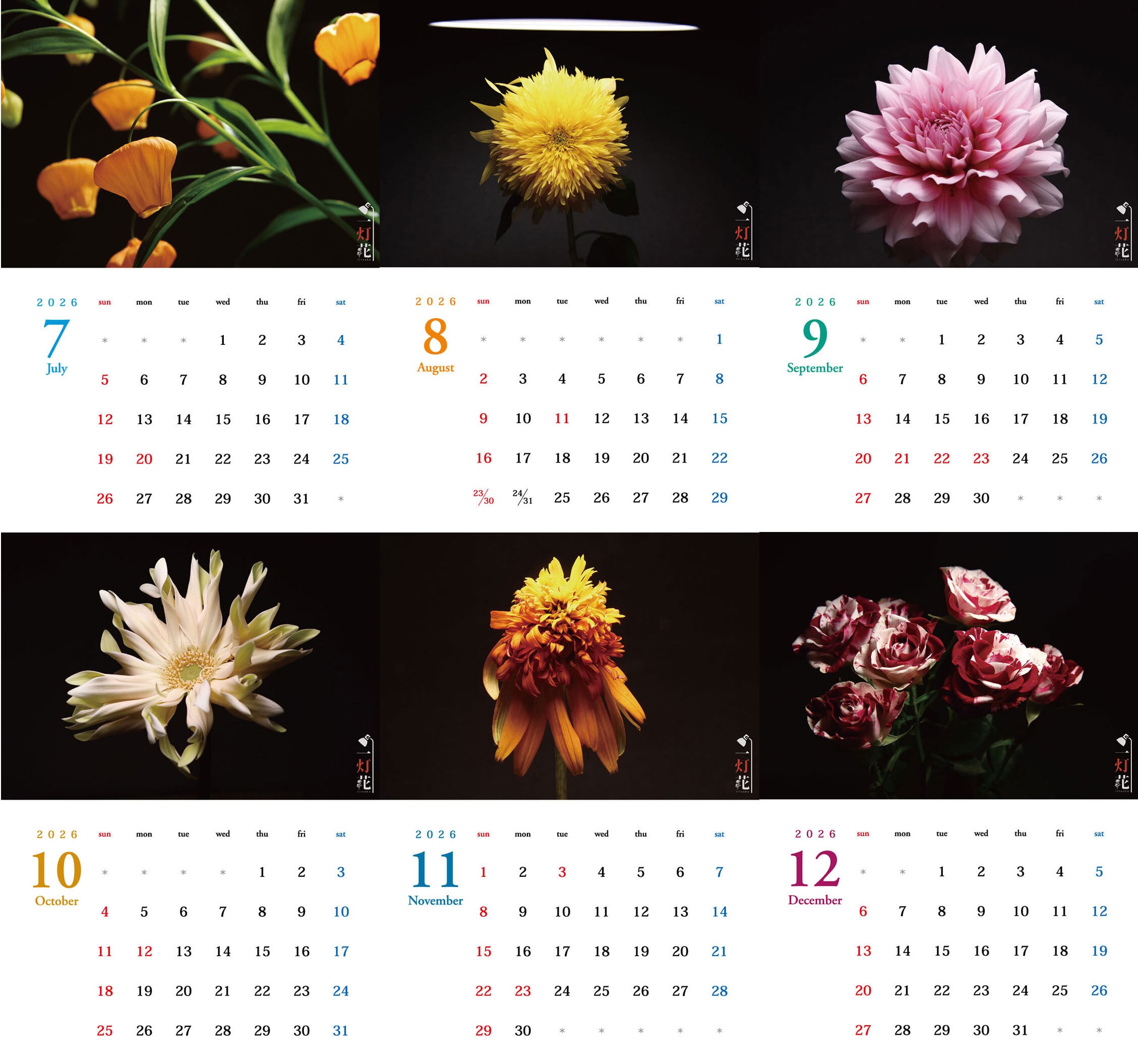 2026壁掛けカレンダーA+2026卓上カレンダーセット「一灯花-ひとつの灯りで撮る花-」