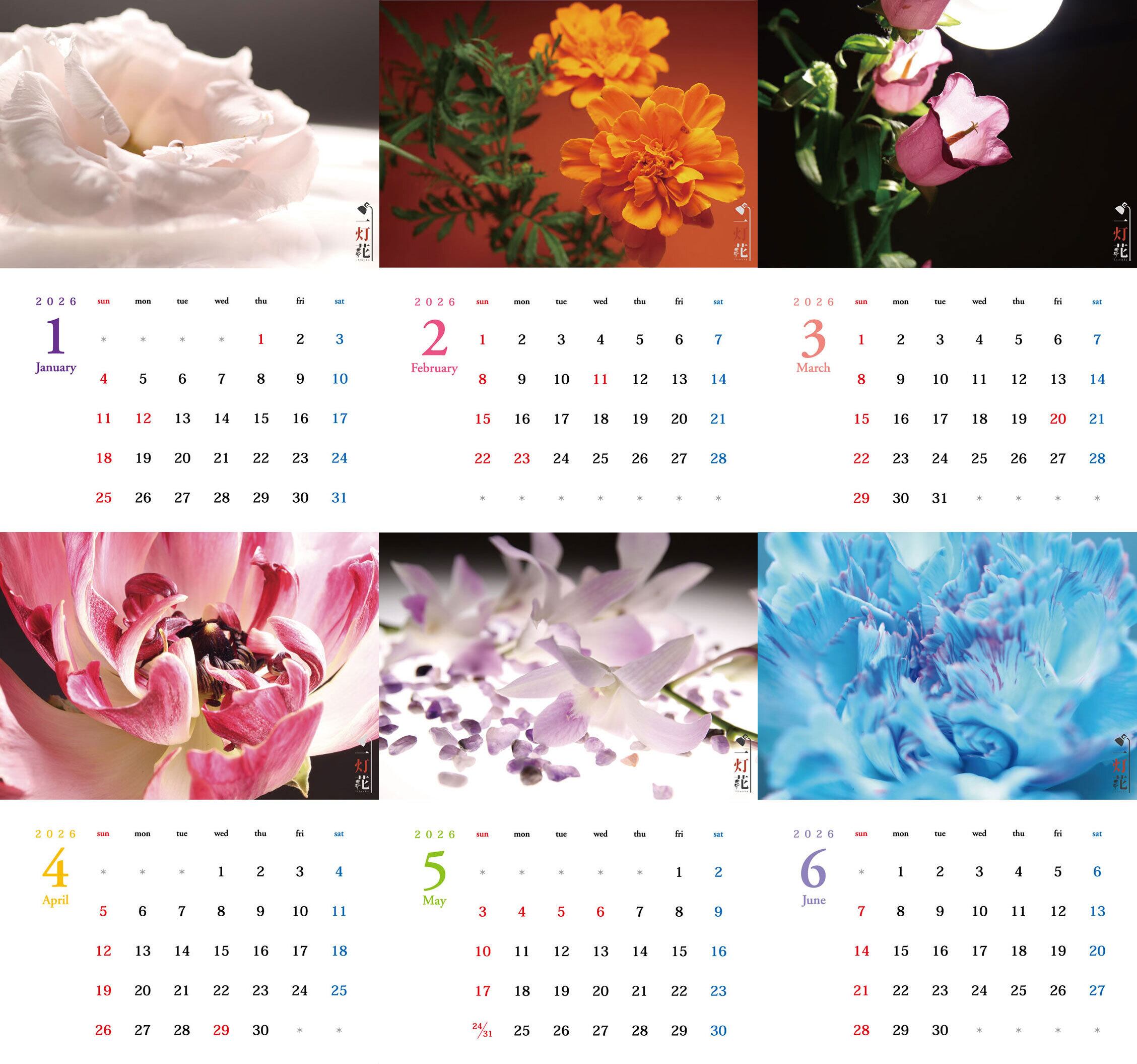 一灯花 2026壁掛けカレンダーBと2026卓上カレンダー、各一点ずつのセット商品となります