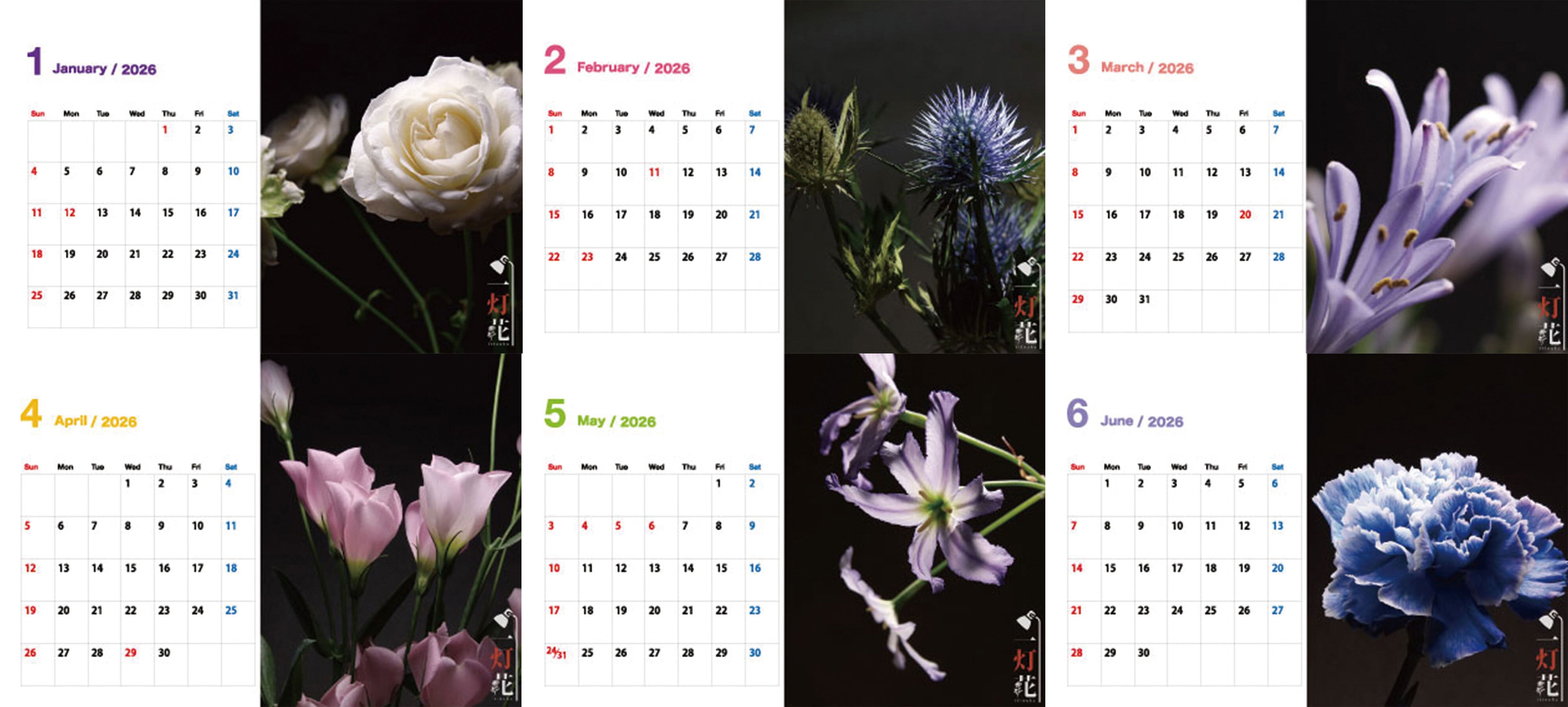 2026壁掛けカレンダーB+2026卓上カレンダーセット「一灯花-ひとつの灯りで撮る花-」